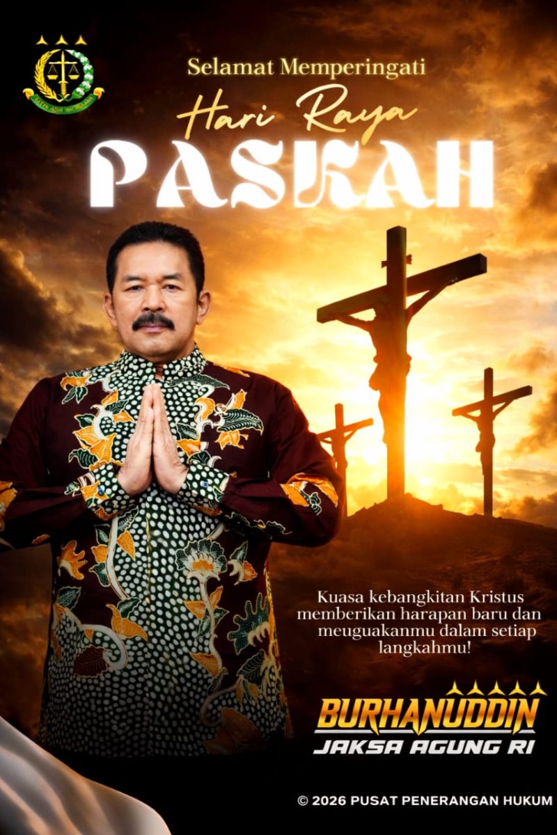 Keluarga Besar Kejaksaan Republik Indonesia (RI) beserta jajaran Kejaksaan Tinggi dan Negeri di seluruh Indonesia mengucapkan Selamat Memperingati Jumat Agung (3 April 2026) dan Selamat Hari Paskah (5 April 2026). Pesan yang disampaikan menekankan pada damai, sukacita, kasih, dan semangat baru dalam pengabdian.